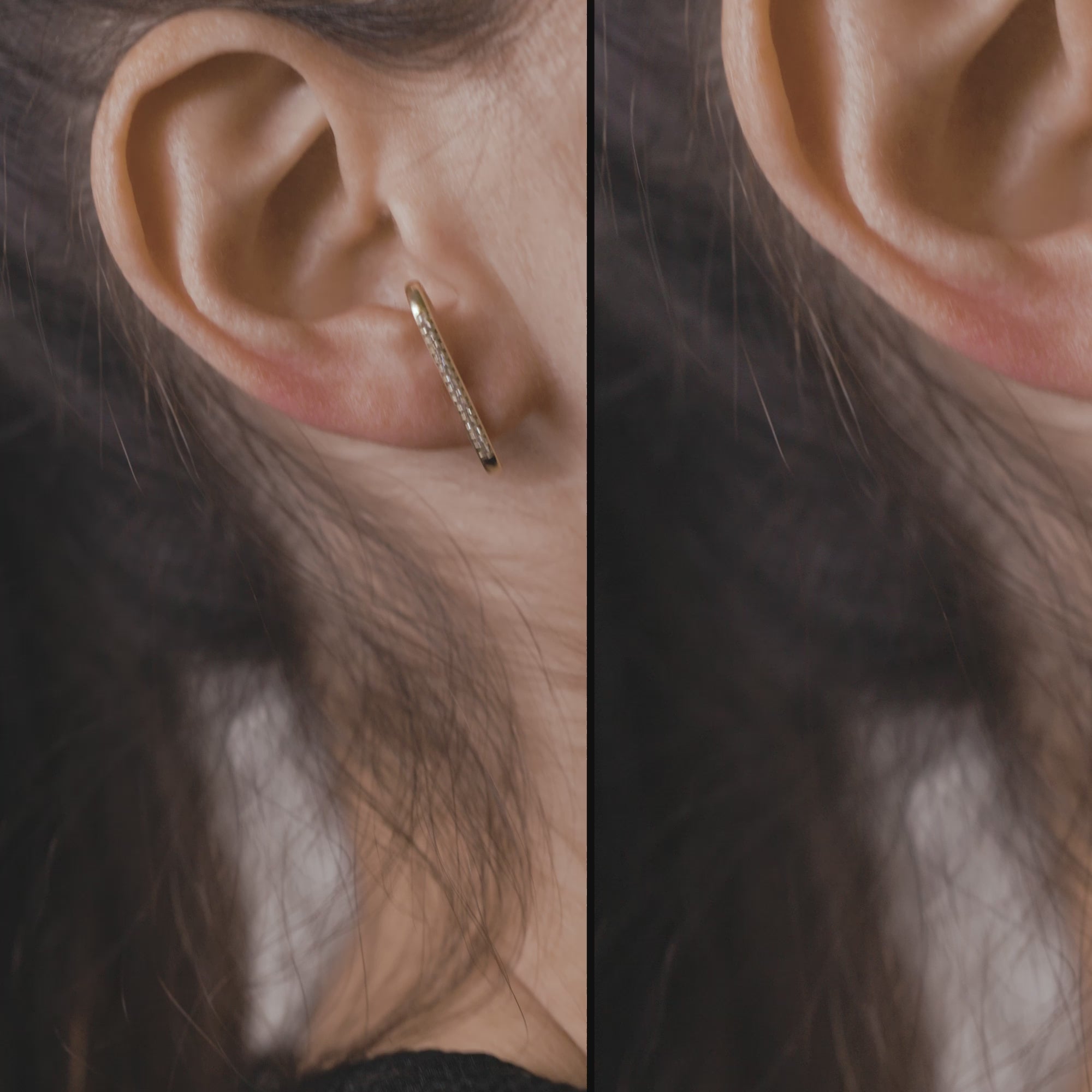 This fun, easy huggie looks amazing paired with simple studs or chunkier pieces. This piece has a singular row of pavé diamonds.