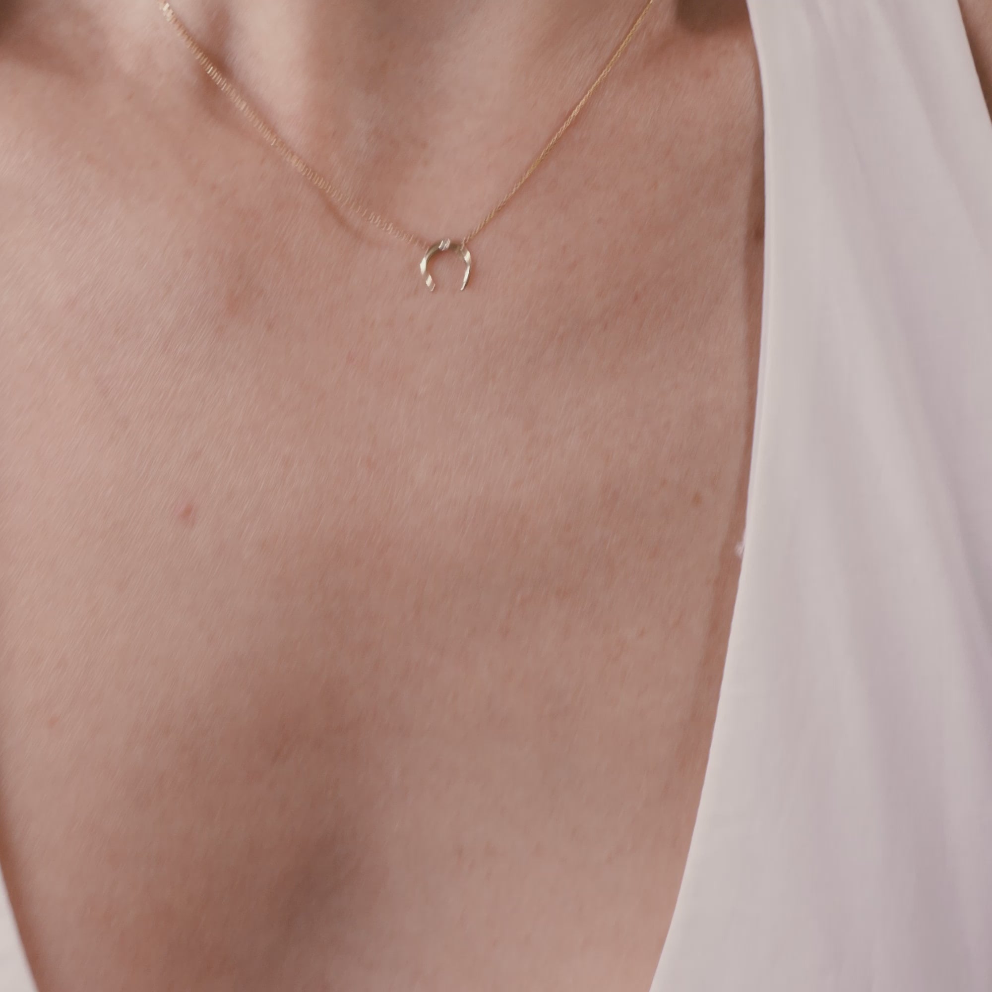 We believe the ends of a horshoe are responsible for catching and receiving luck. Set with round brilliant pavé, this mini piece is both subtle, yet eye catching. The luck in a horseshoe symbol, along with the necklace's elegance, makes this piece perfect.