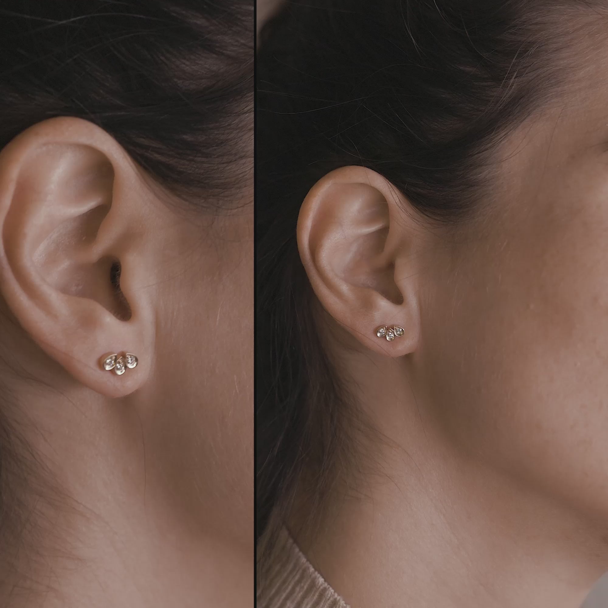 Three round-cut diamonds in a pear setting. The perfect stud for everyday wear.