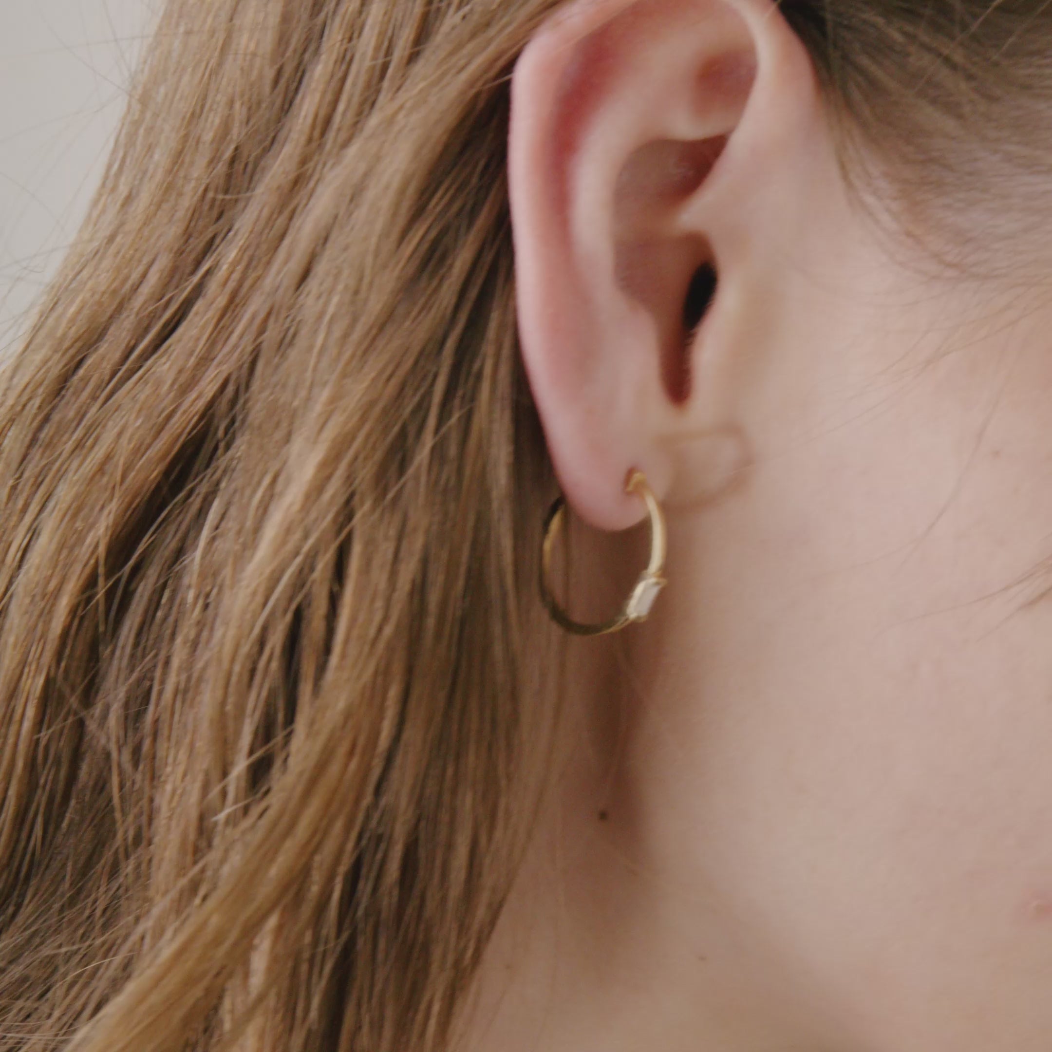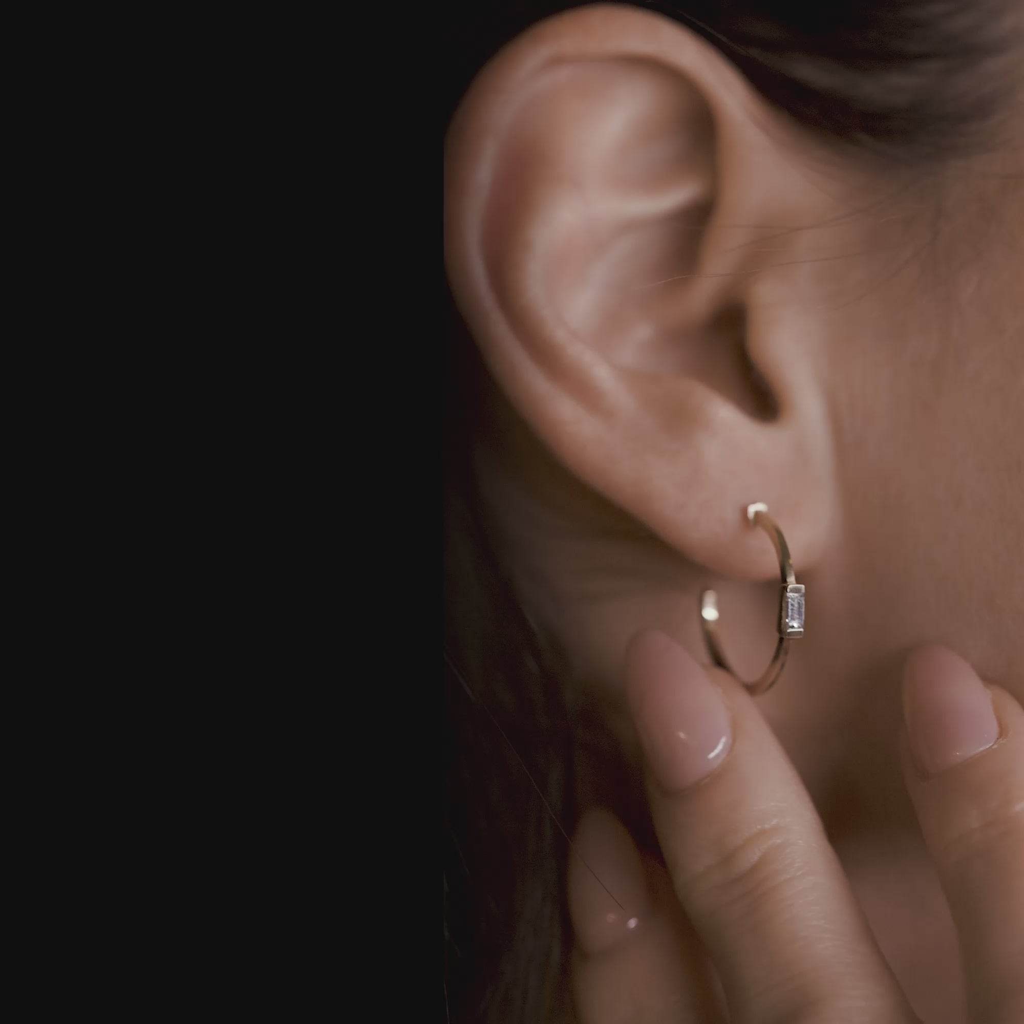 This simple yet elegant hoop earring has a baguette diamond placed in the center. The perfect set for daily wear.