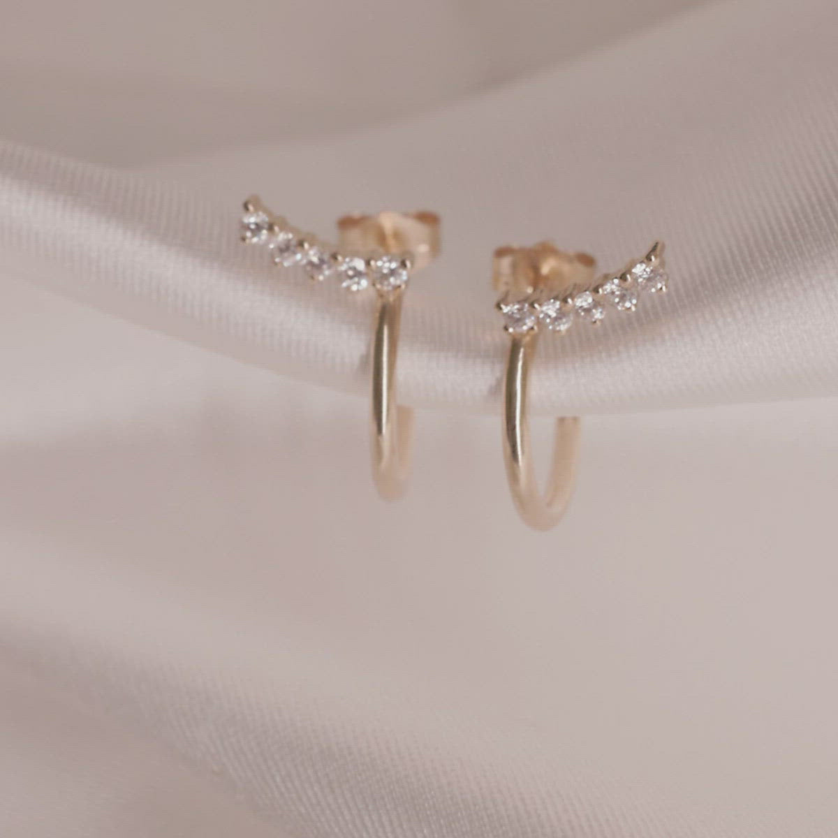 Beautiful hoops that are set with round diamonds. The diamonds cover your piercing, placed exactly like the Gaia diamond studs, giving off a unique and classy look.
