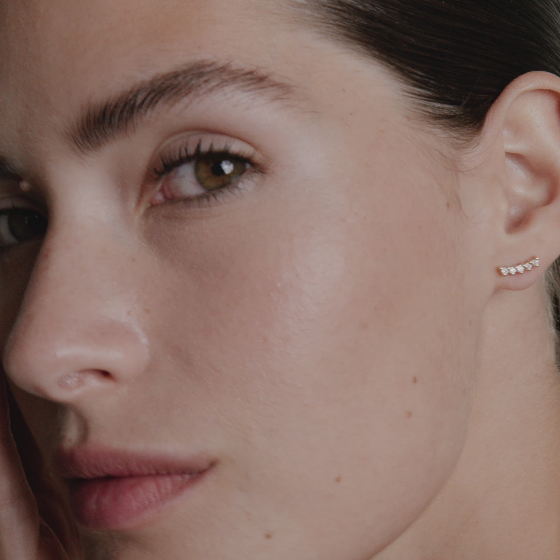 A little bit of funk added to your everyday stud. Produced with round-cut diamonds, this elegant piece on your ear will be eye-catching!