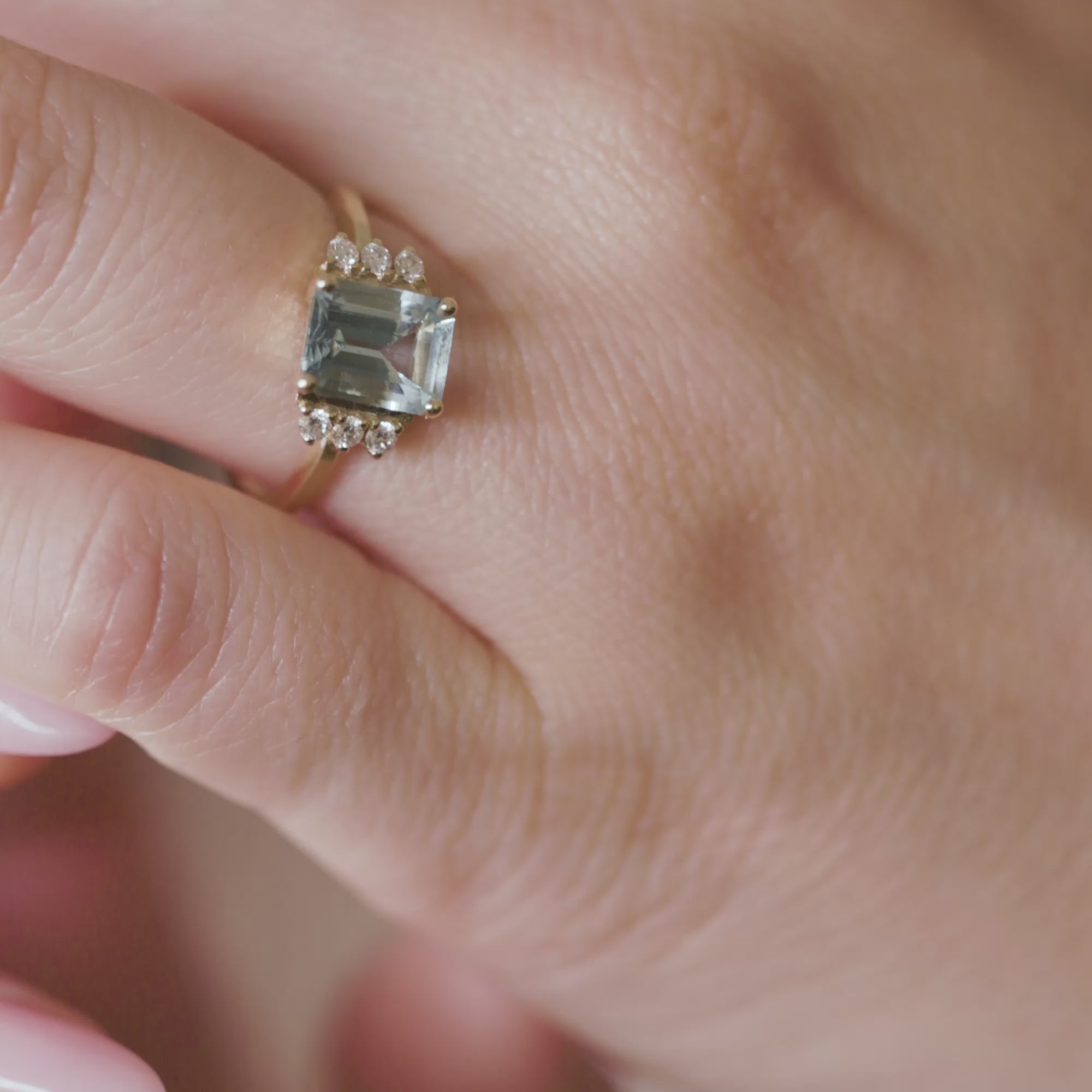 Set with 0.80-160CT emerald cut aquamarine (1.60CT aquamarine in picture) & 0.18CT baby round diamonds, this ring is an amazing classic for anyone looking to spice up their style.