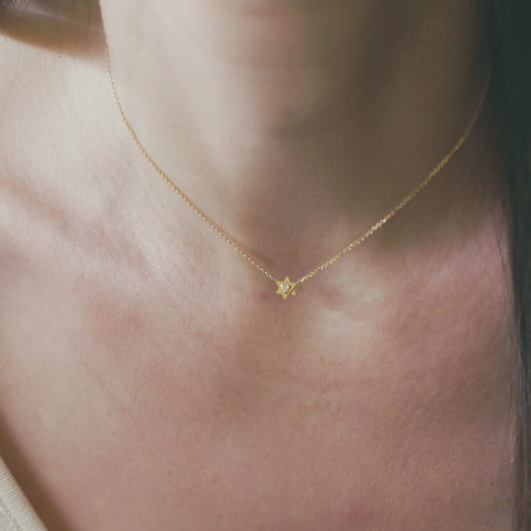A simple and delicate Star-of-David shaped pendant that can be set with any gem or diamond. This necklace is perfect to stack with other, longer chains.
