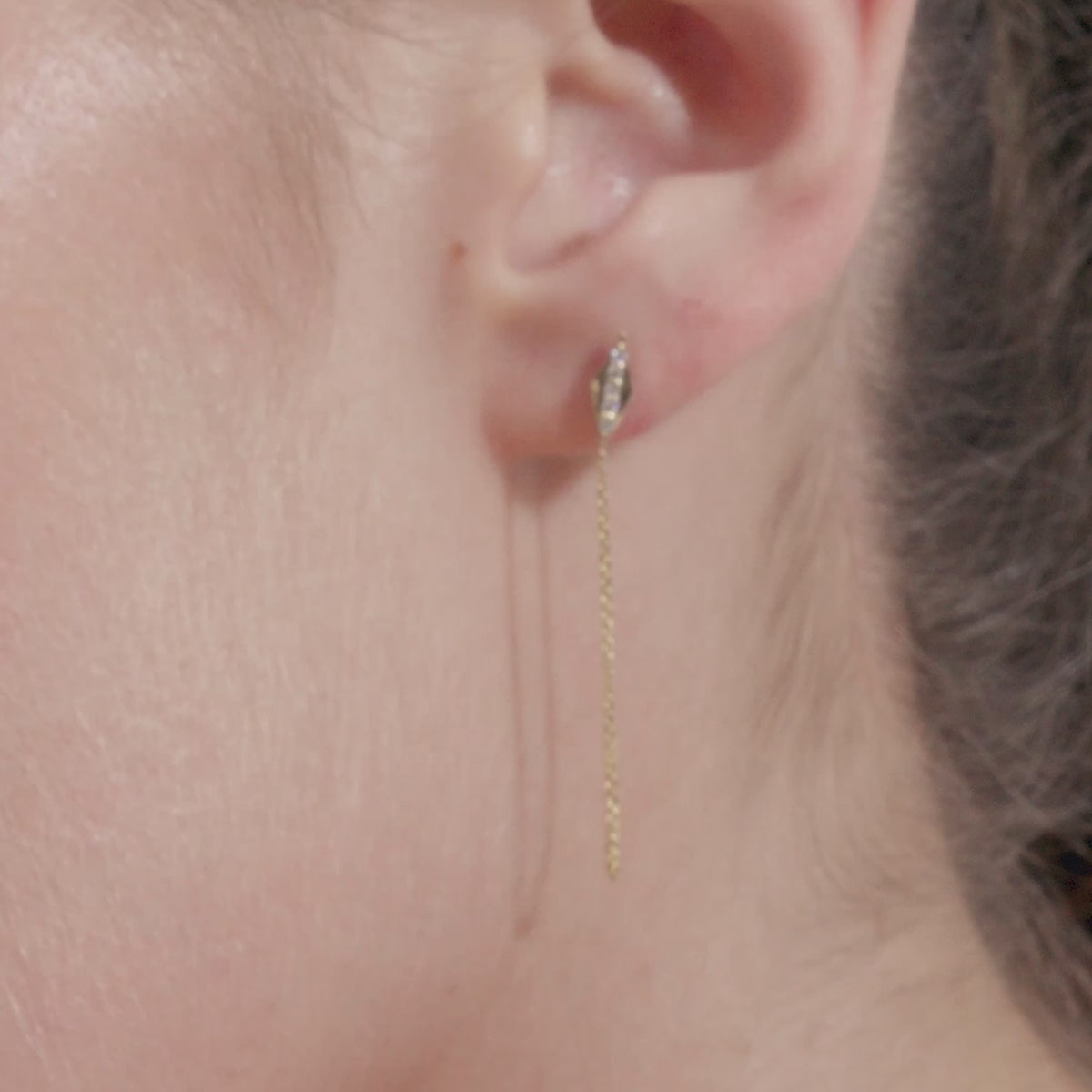 This triangular earring is set with round brilliant pavé diamonds with a loop chain. Perfect for your go-to, daily wear.