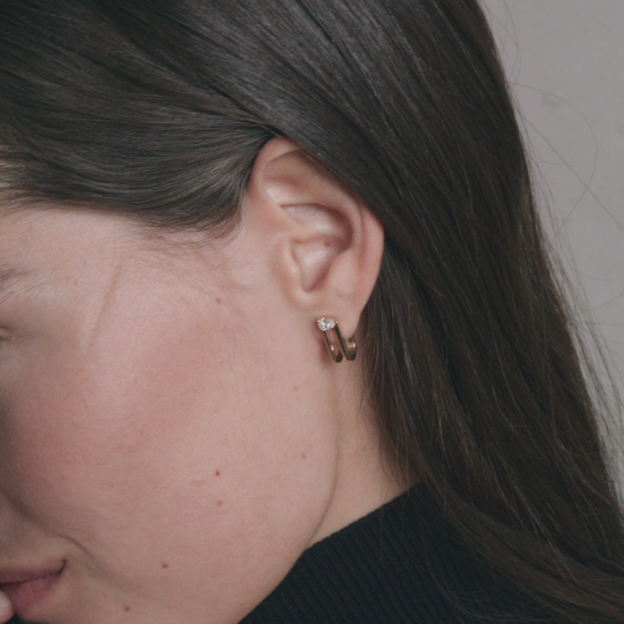 Perfect for everyday wear, these Mini Huggies feature a pear-shaped diamond, giving you a touch of elegance and luxury in a convenient and comfortable package.