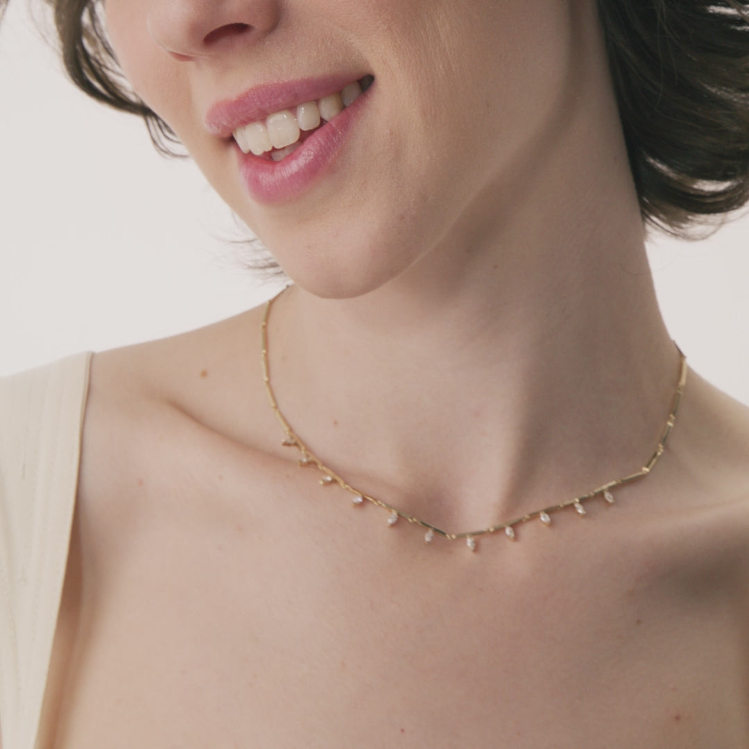 Experience a truly memorable piece with the stunning combination of marquise diamonds set on a floating metal rhombus.