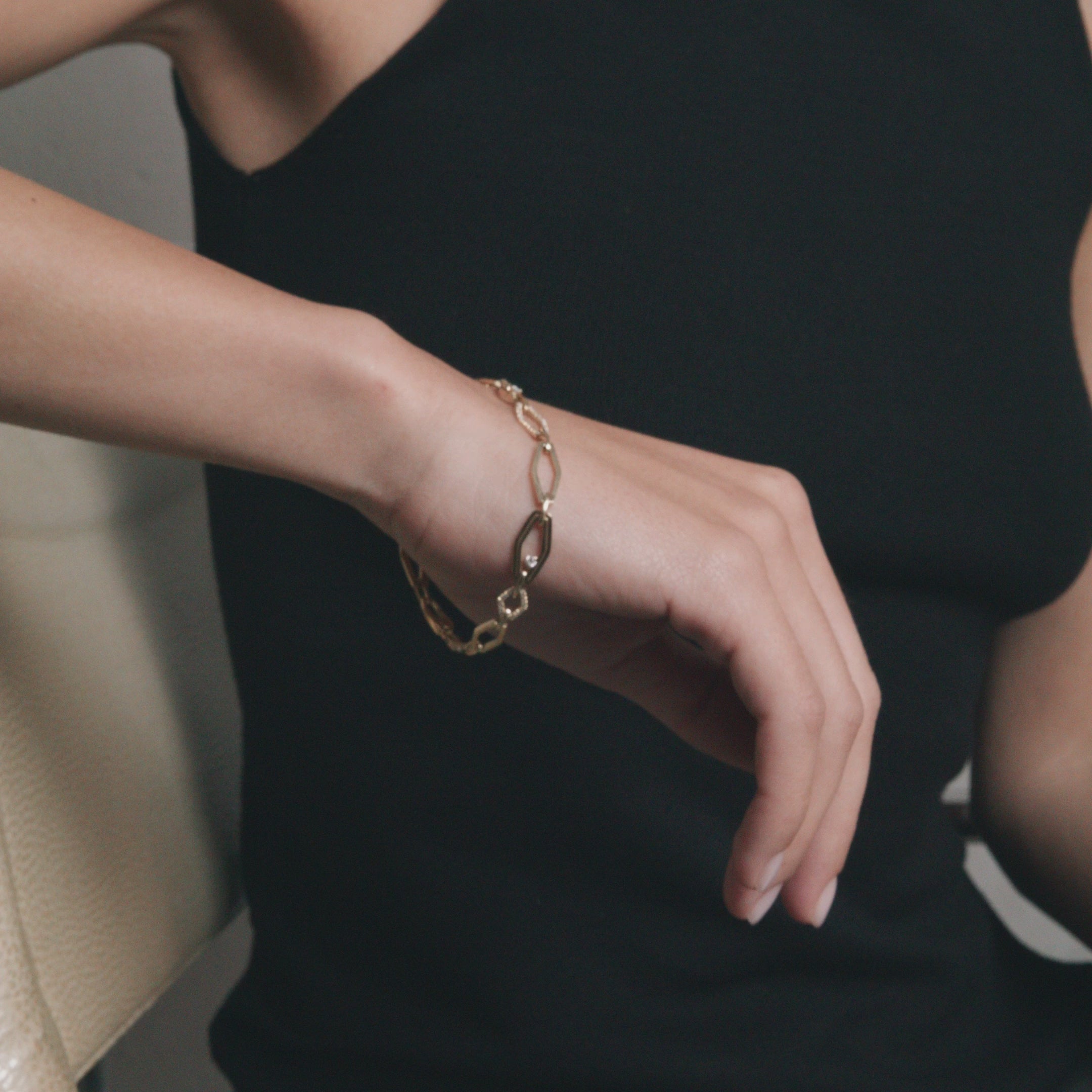 A jaw-dropping link bracelet set with sparkly diamonds. The perfect statement piece for any outfit!
