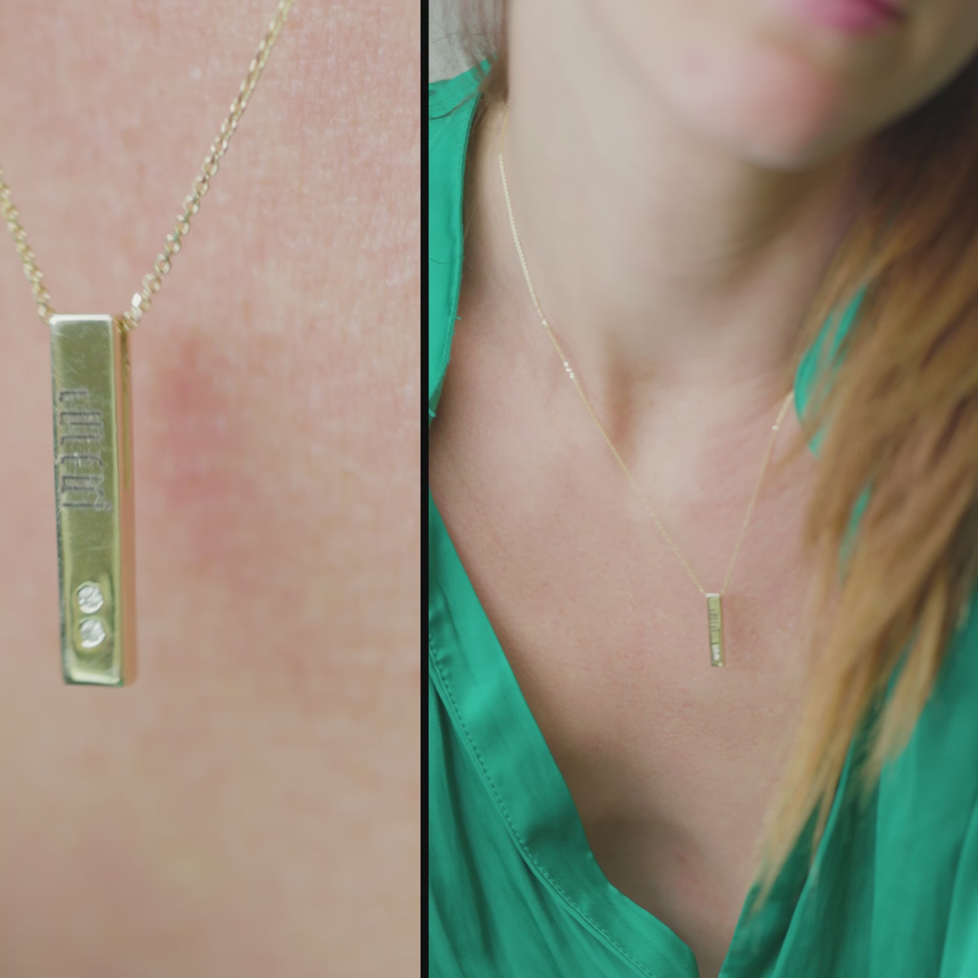 This simple gold bar was designed to keep what’s important close to your heart. This pendant can be customized with a birthstone and/or a meaningful engraving. Feel free to contact us for guidance on your customization!
