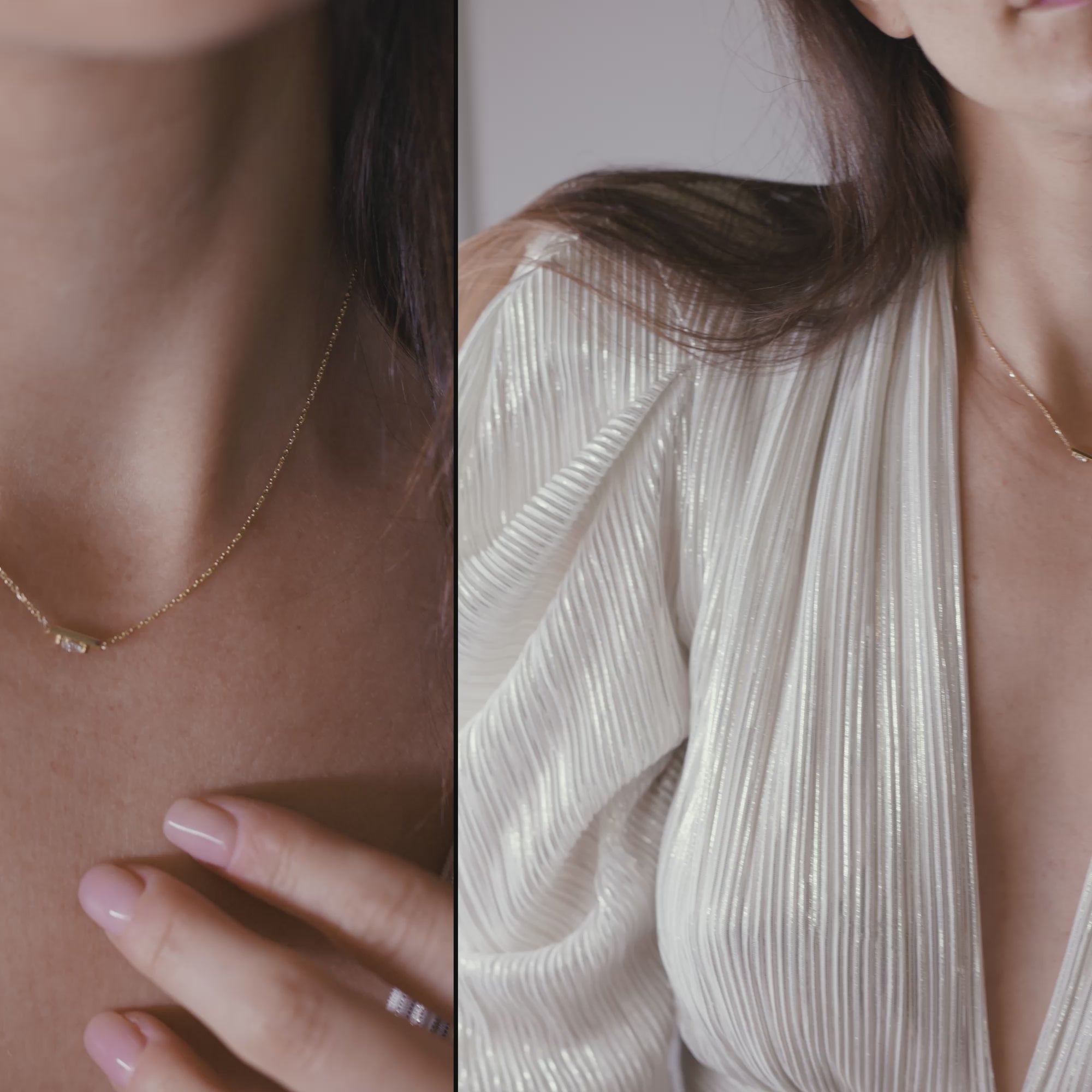 Marquise diamonds set on a floating pole, attached on a dainty chain. Your perfect piece.