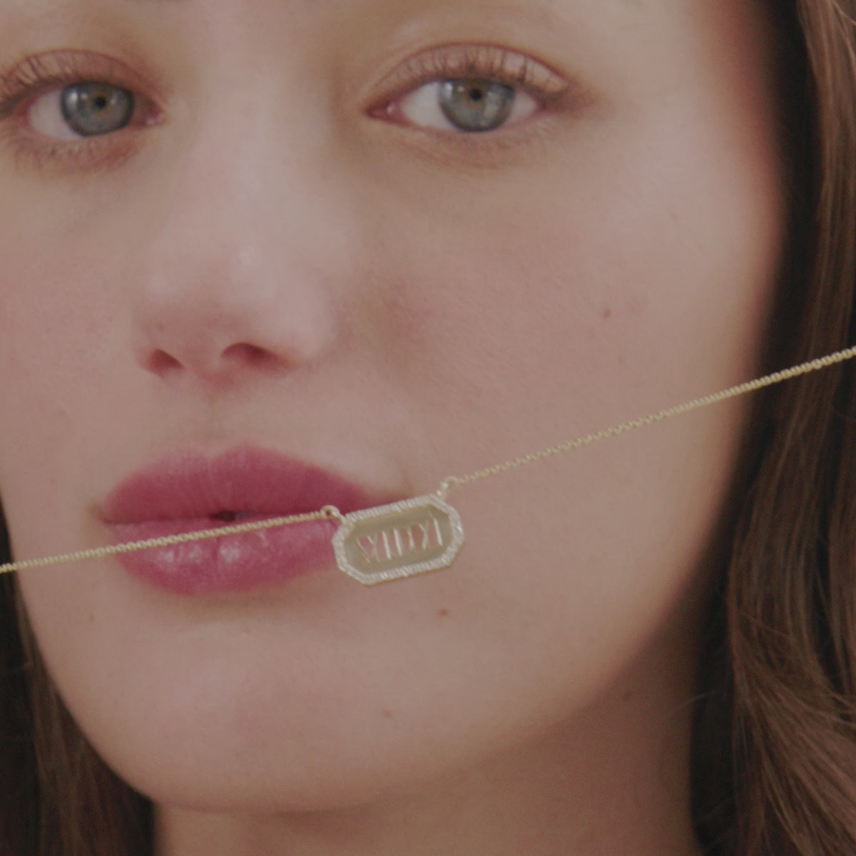 A beautiful diamond highlighted tag element with our delicate and special font, a perfect gift to show her your love and appreciation . A classic and sparkling piece that sits beautifully with any layered look