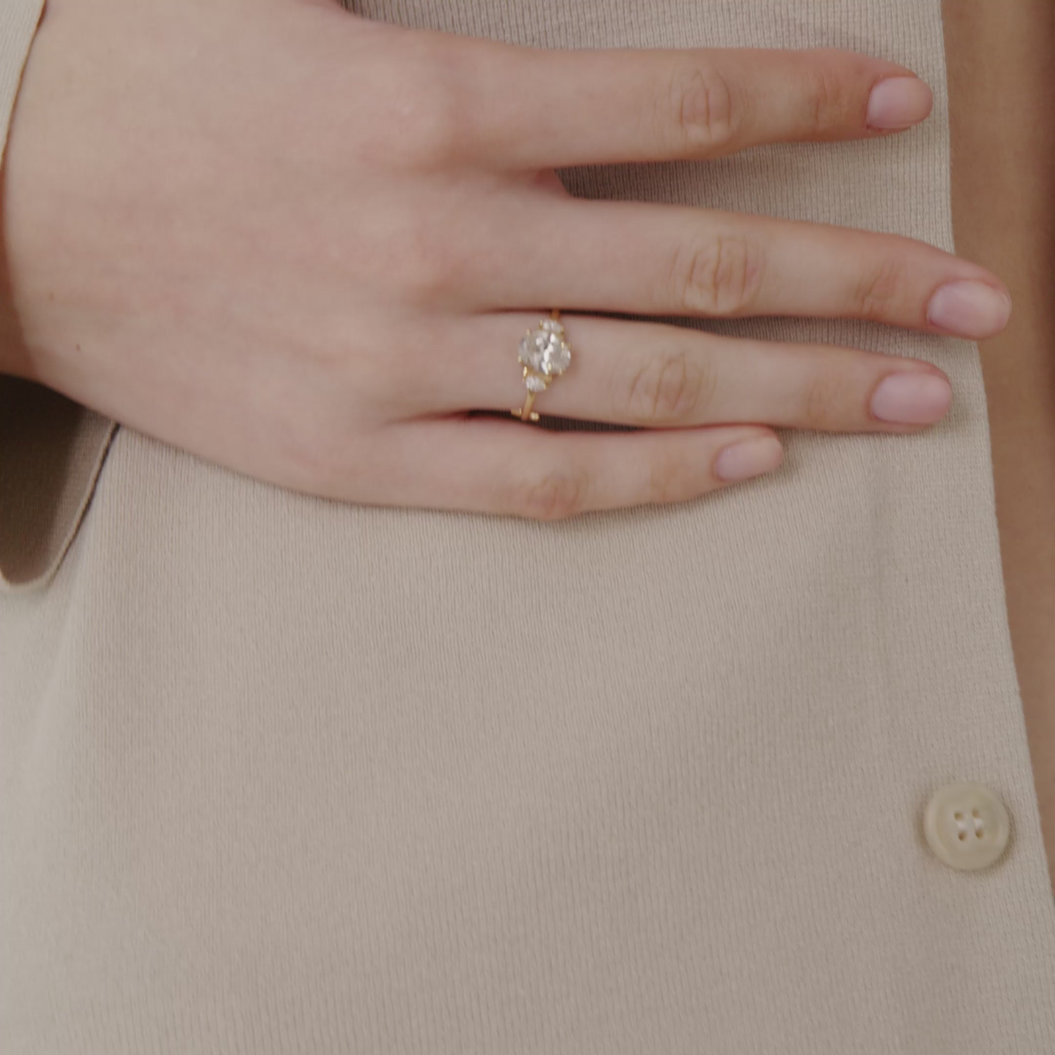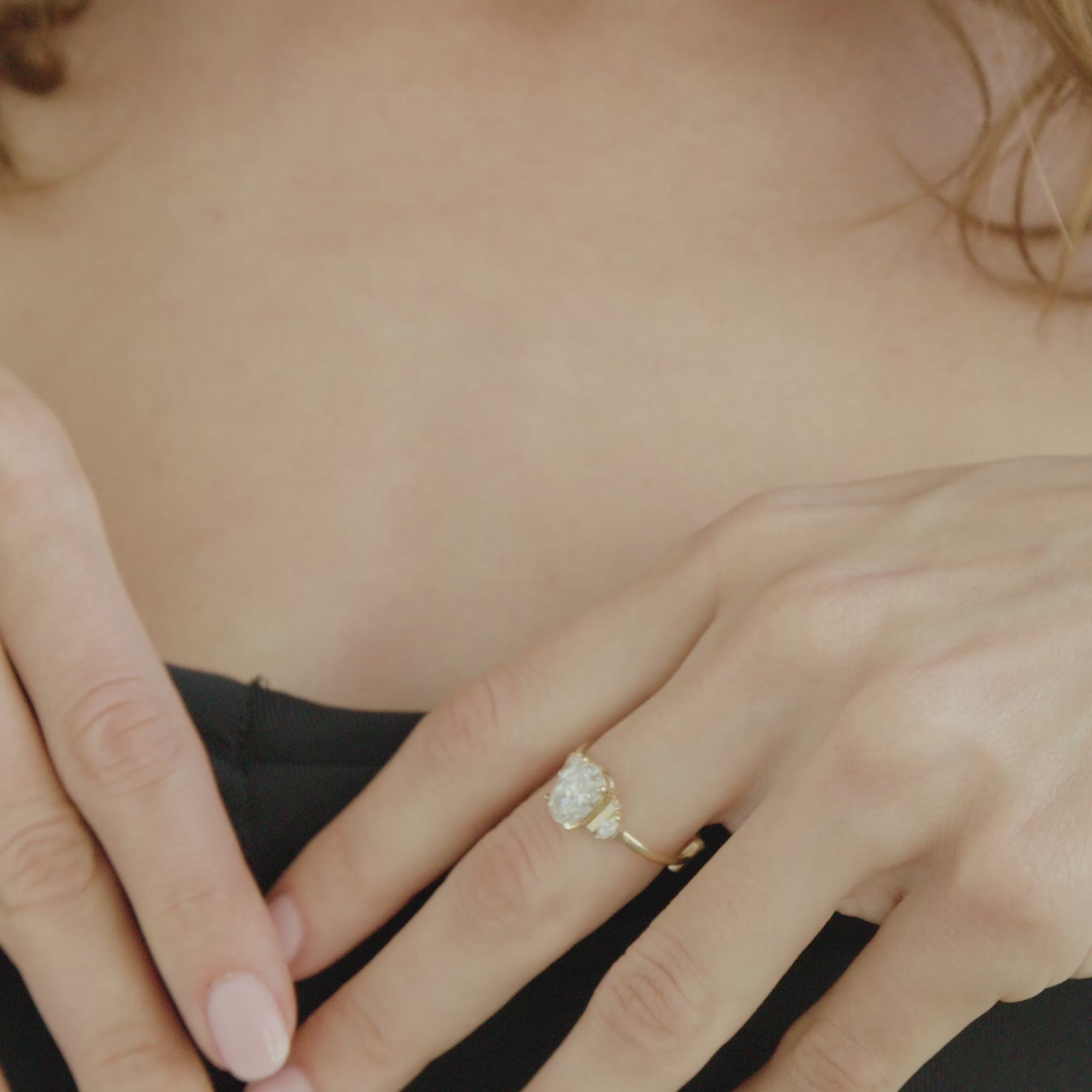 A classic take on a vintage cut- this three-stone diamond ring is a unique one, set on our ultra-thin band. This piece was created for maximum coverage of your finger and sparkle from every angle.