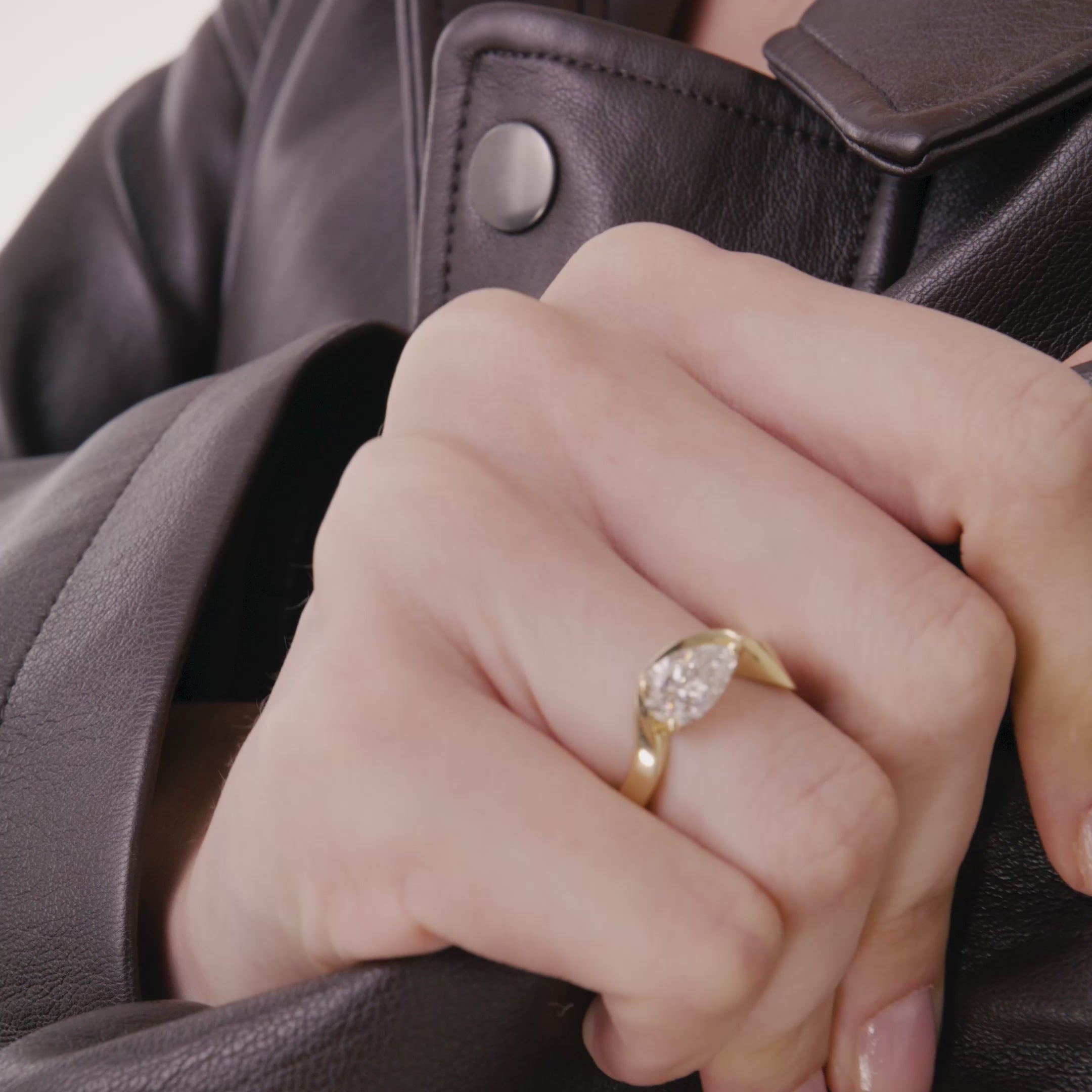 An innovative interpretation of a timeless engagement ring, the unique geometric wave design of this piece is just one of the many options available from the Parametric collection. Versatile and elegant, it can be worn alone or paired with other rings for a striking effect.