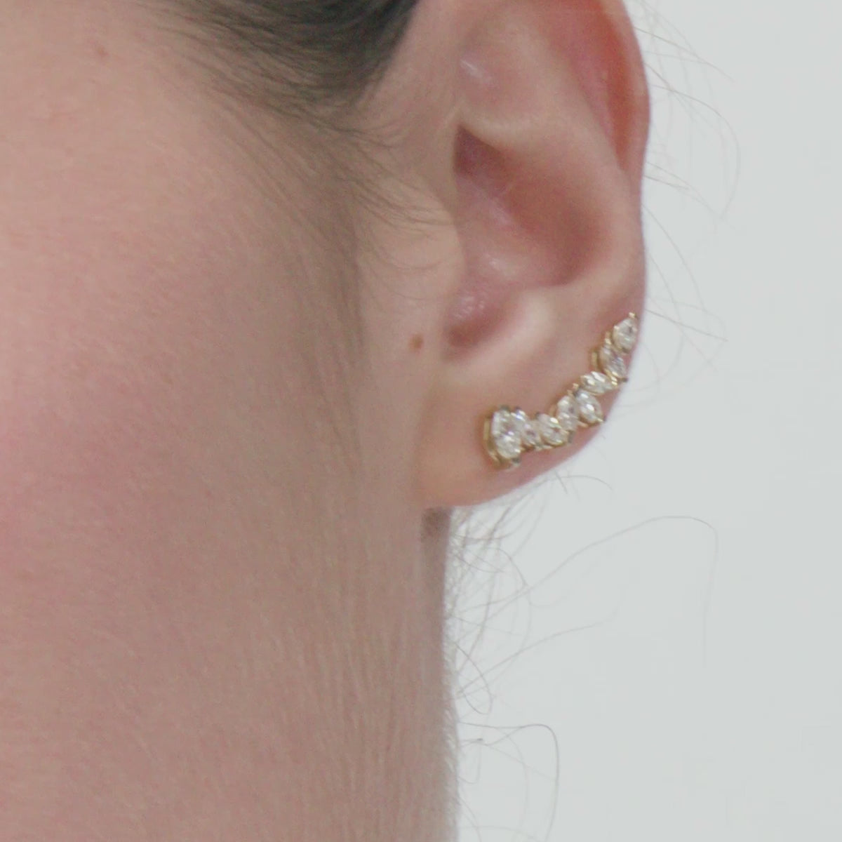 An upscale ear climber is a perfect piece to top off any outfit and your ear party. Made with marquise-cut diamonds, the climber sits beautifully on the lobe.