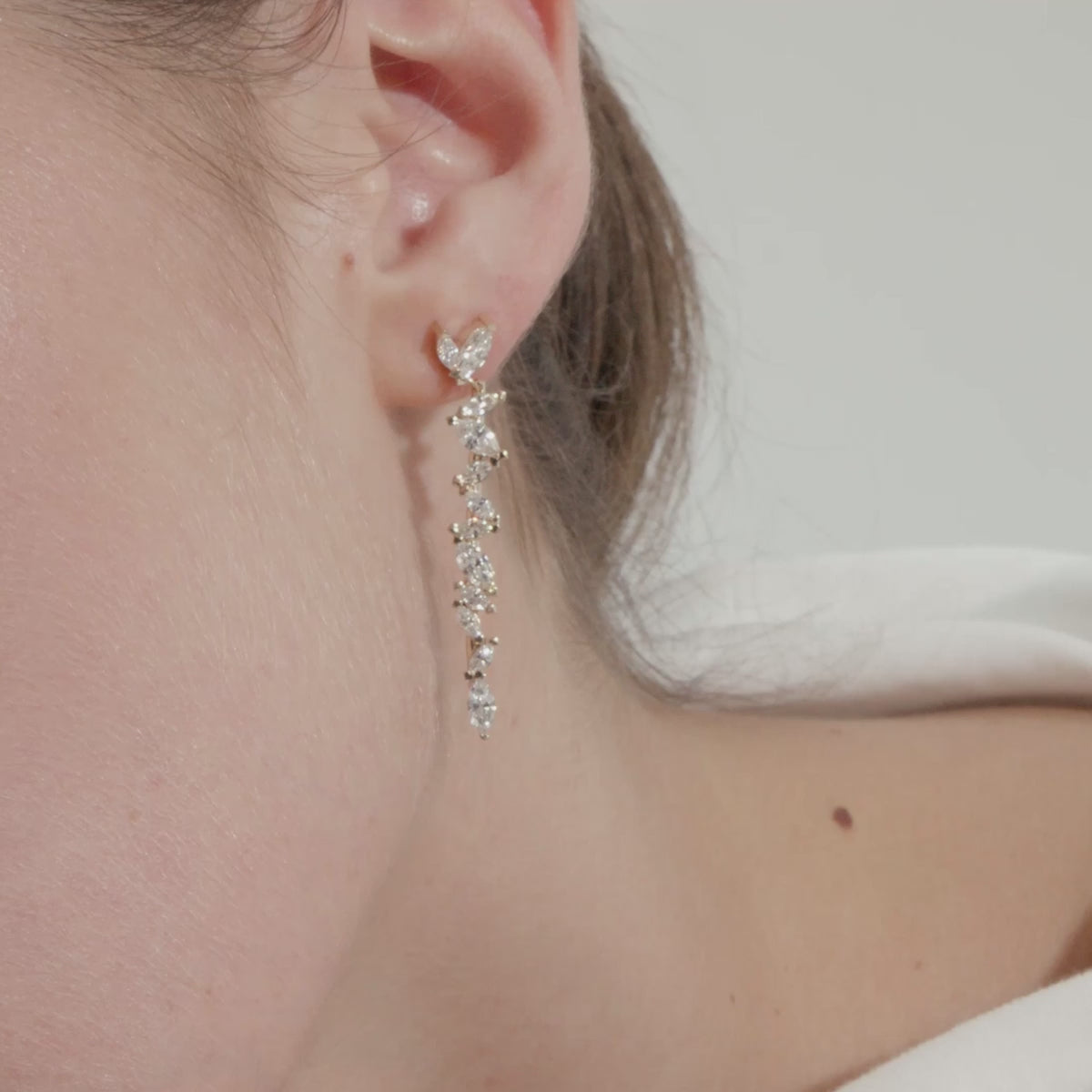 An elegant marquise diamonds drop earrings. It's the perfect way to add a touch of sophistication to your look. Crafted from the finest materials, these earrings offer timeless elegance and timeless appeal.