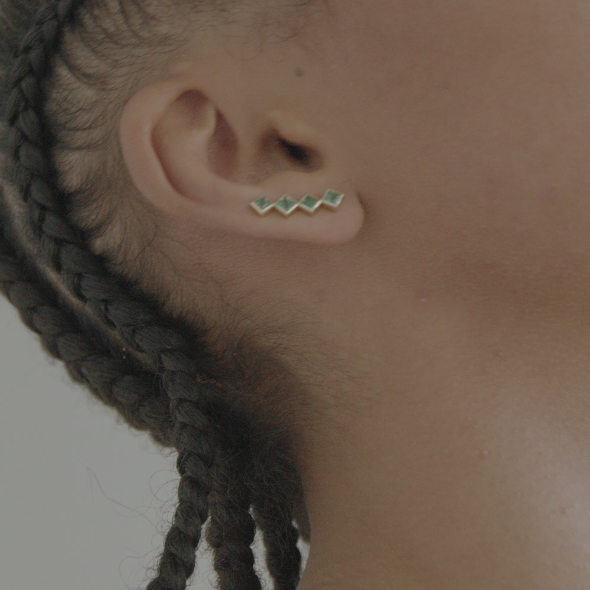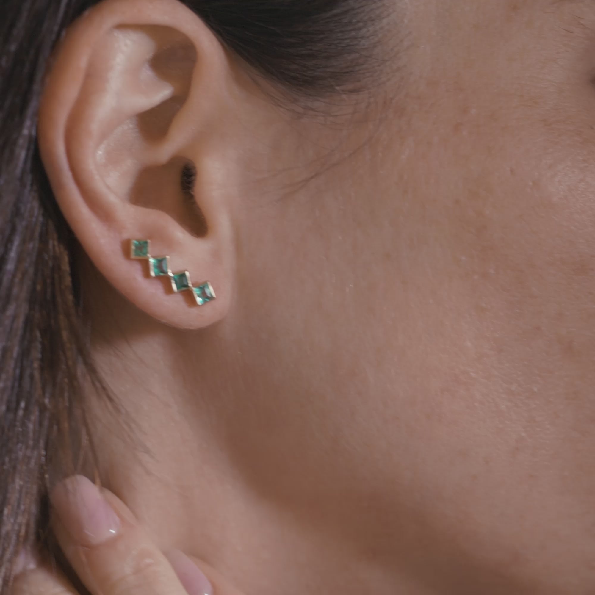 Made with princess-cut natural, unheated emerald gemstones, this upscale climber sits beautifully on the lobe and is the perfect piece to top off any look.