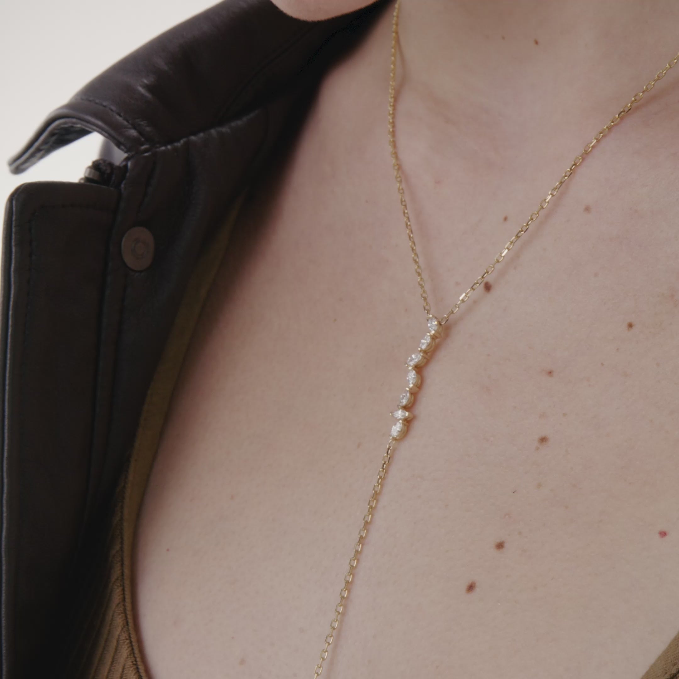 Marquise diamonds set on a floating pole, attached on a dainty chain. Your perfect piece.