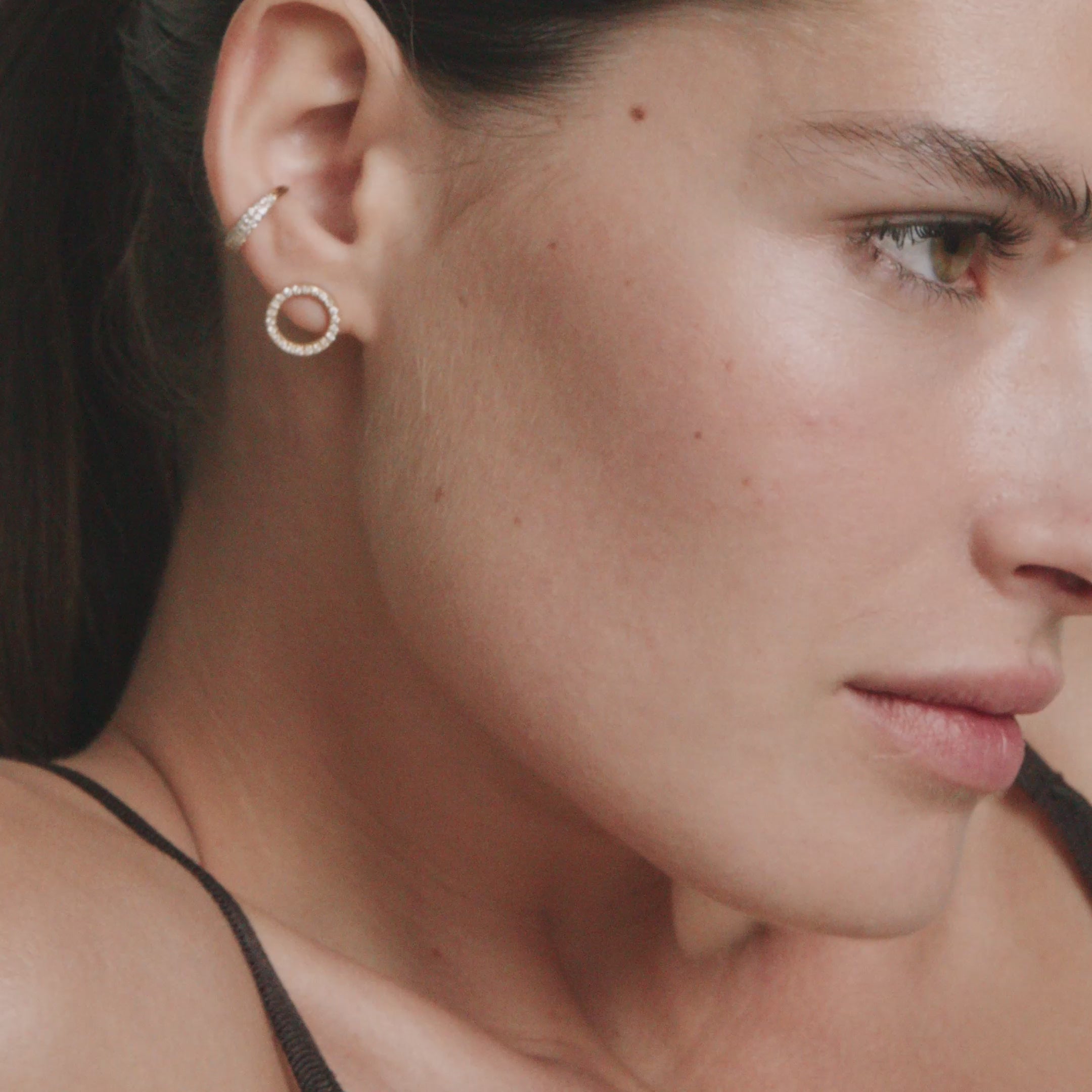 These circular earrings are set with round brilliant pavé diamonds. You can make your ear party shine even brighter by pairing these with a stud stack.