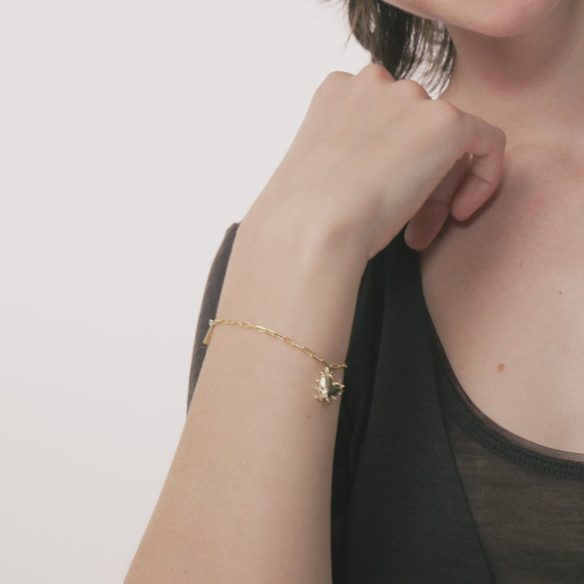 A delicate and comfortable bracelet with a heart-shaped element studded with a shiny small diamond. A delicate and modern piece for any outfit.