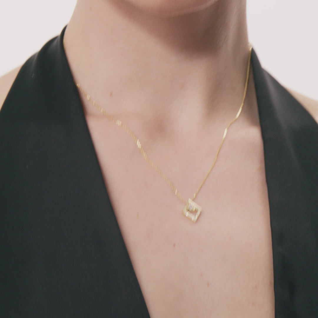 This elegant, unique pendant is set with a triangular shaped diamond and pavé on the bottom half of the piece. This necklace is perfect for layering with other YAMA pieces, or can be worn alone for a simpler look.