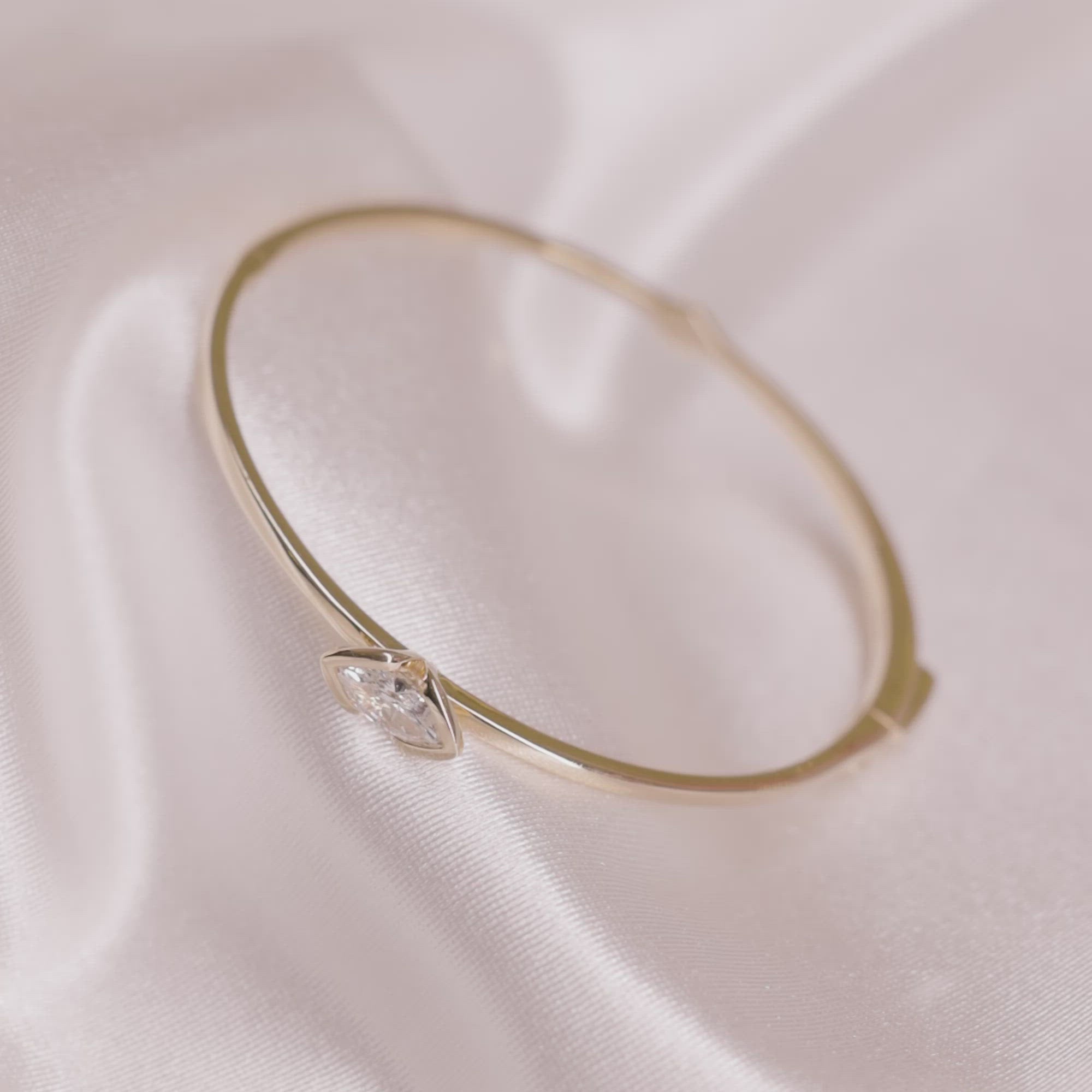 This cuff is light on your wrist but has enough sparkle to stand out. The piece is set with an amazing marquise-cut diamond, giving it an elegant and elongated look.