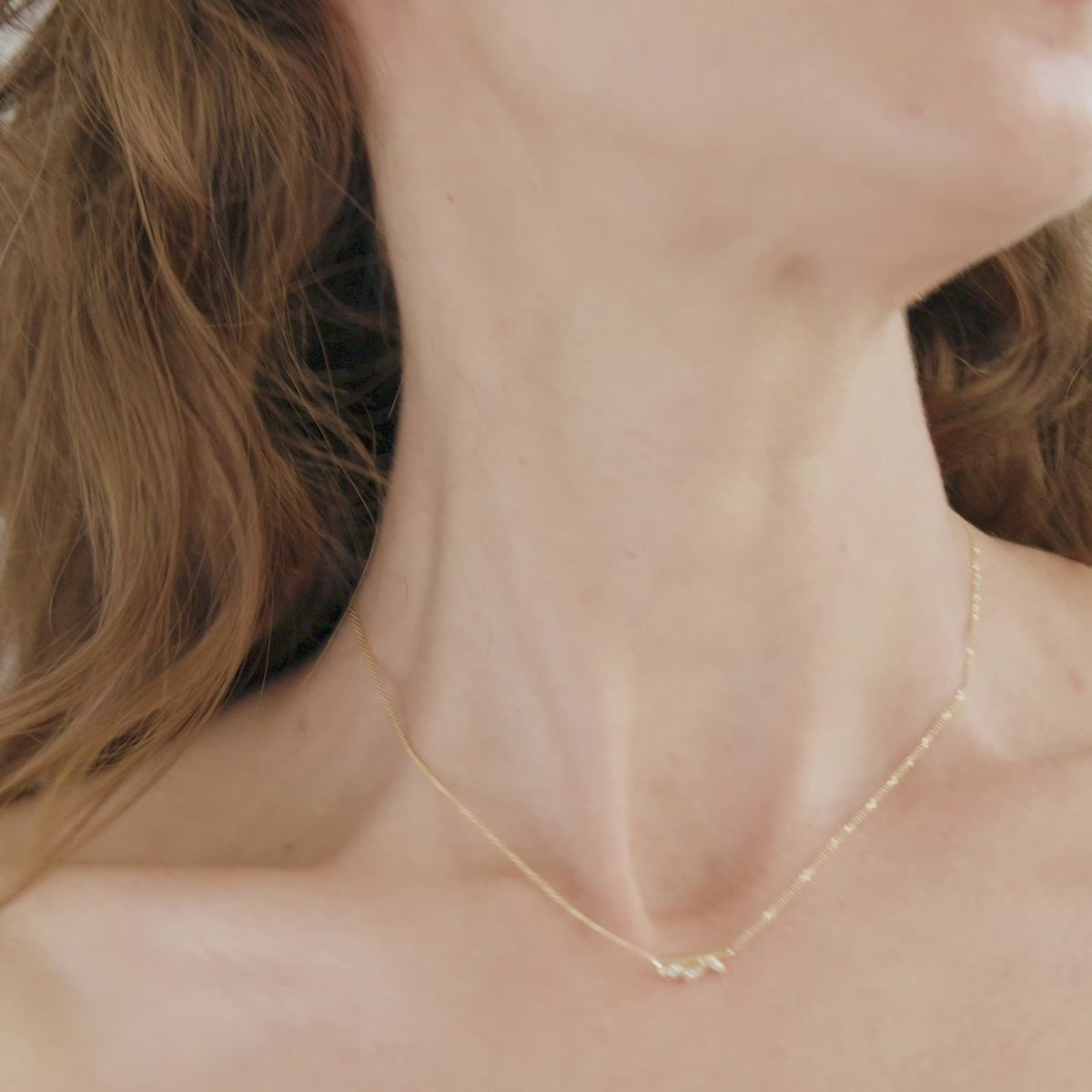 Marquise diamonds set on a floating pole, attached on a dainty chain. Your perfect piece.