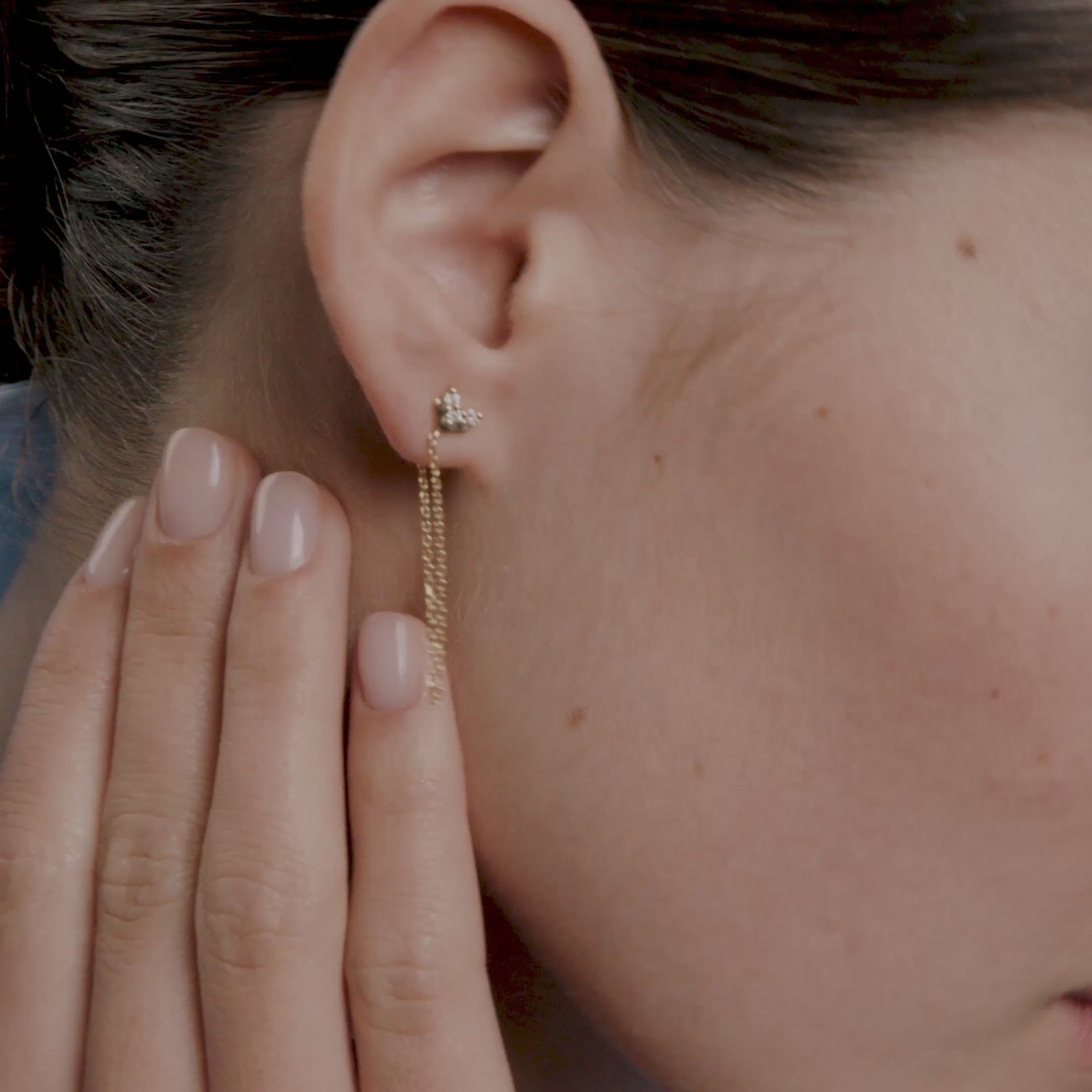 Beautiful Val earrings, set with round brilliant diamonds and a delicate chain. Perfect for your go-to, daily wear.