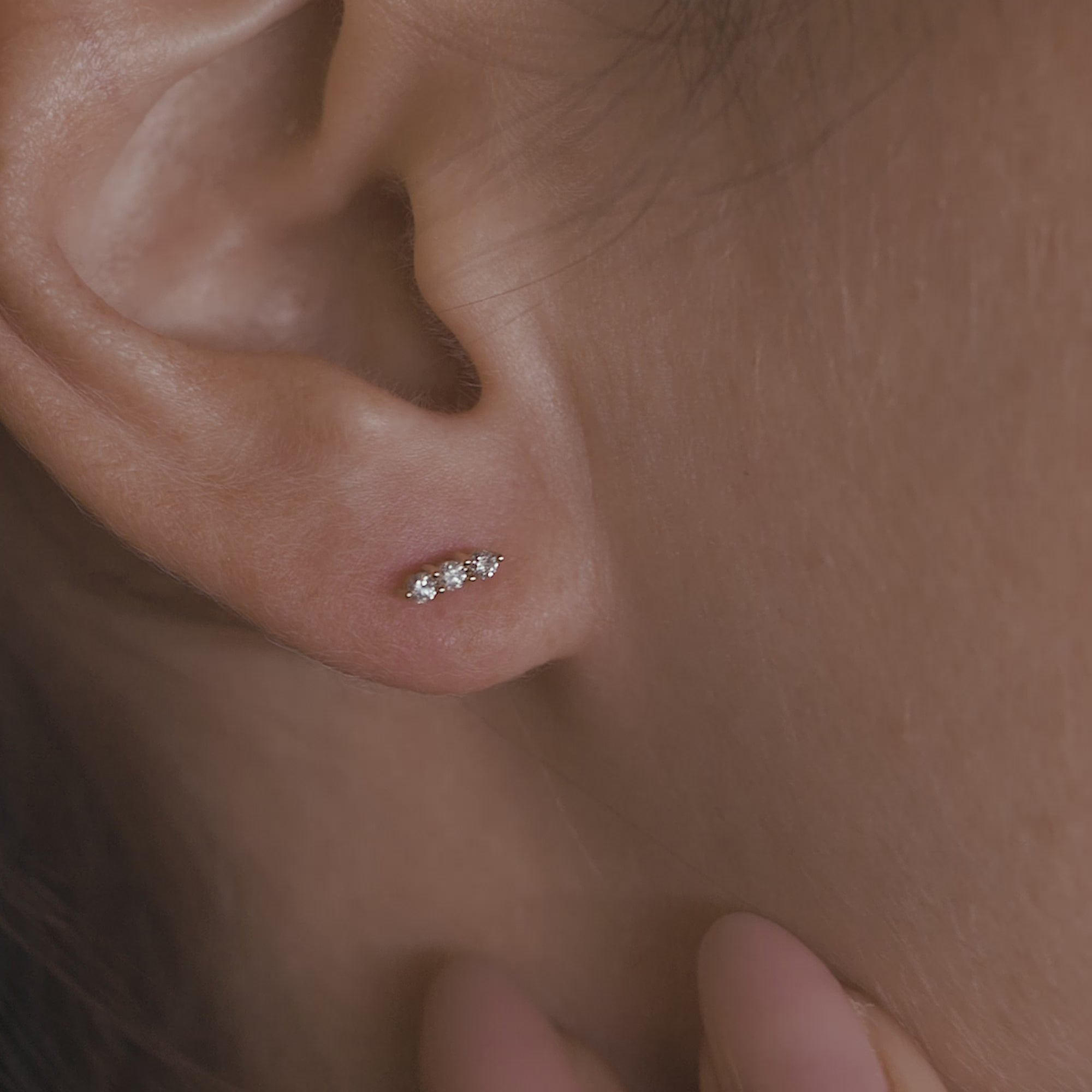 A classic three stone stud that will upgrade your ear game to the next level. Can be worn on its own or to style in an ear party!